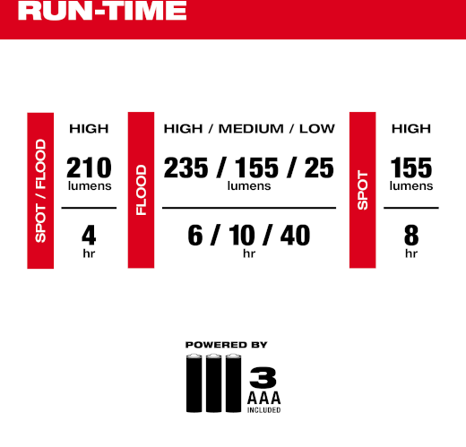 Our Intrinsically Safe Class I, II, & III / Division 1 Spot/Flood Headlamp sets a new standard for hazardous location personal lighting, delivering GREATER VISIBILITY, HIGHER OUTPUT, and NO COMPROMISE to size or safety. The headlamp is rated for Classes I, II, and III, Division 1, delivers you with 310 Lumens of TRUEVIEW™ High Definition Output, and can reach a beam distance of up to 100 meters. With a lightweight, compact design, there is no compromise to size for output and performance. Designed with the safety manager in mind, this hi-visibility headlamp has explicit on-tool and on-strap intrinsically safe logos for easy identification, even at a distance. Powered by 3 AAA batteries, this spot and flood headlamp provides you with up to 40 hours of run time and features 5 output modes to manage your brightness and run time. This head torch is IP64 rated, making it dustproof and water-resistant. It includes a rubber strap optimized for hard hat use, a nylon strap for bare head use, and a Dual Lock™ adhesive allowing you to connect it straight to a hard hat. The LED headlamp also comes with four hard hat clips and three AAA batteries. The intrinsically safe headlamp allows you to direct the pivoting light head using seven adjustable positions and is covered by our MILWAUKEE® limited lifetime warranty.